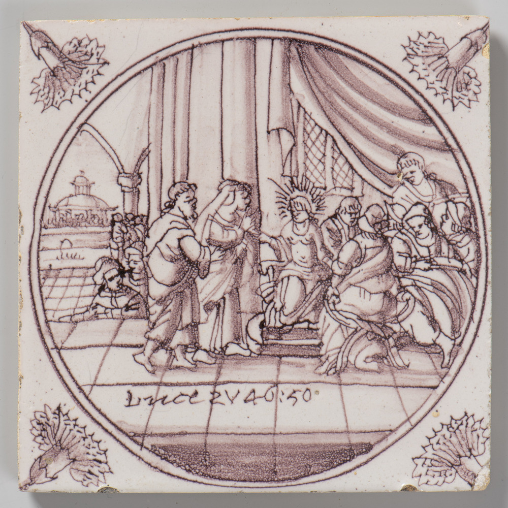 tegel van aardewerk met tinglazuur, voorstellende: h...