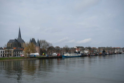 Kampen. De IJsselkade benedenstrooms van de brug.