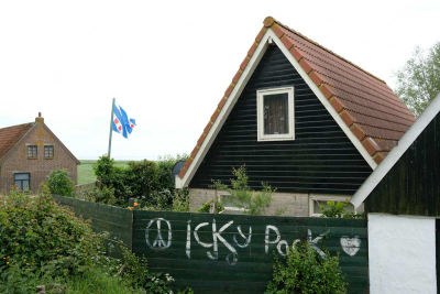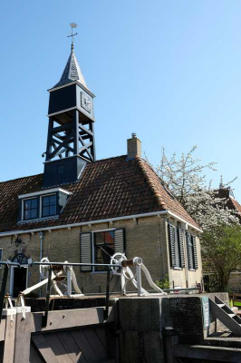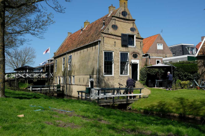Hindeloopen. Het sluishuis gezien vanaf de sluis.
