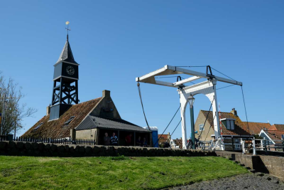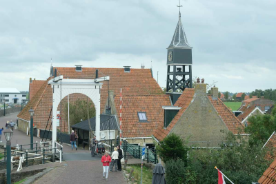 Hindeloopen. Brug over de sluis, daarachter het have...