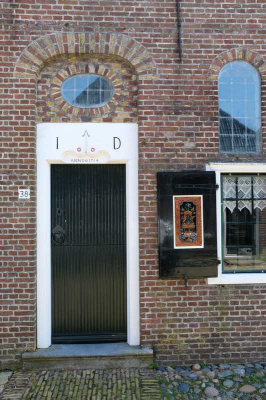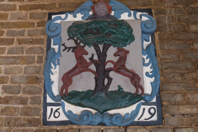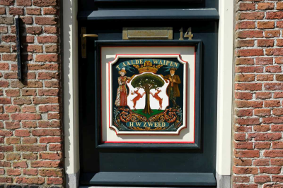 Hindeloopen. Gevelsteen in de 'leugenbank'.