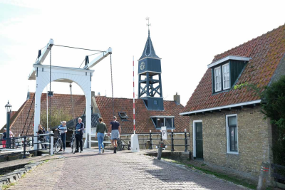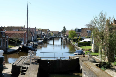 Hindeloopen. Blik op de brug over de sluis, het slui...