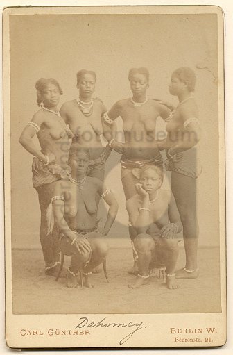 Vrouwen uit Dahomey op een mensenshow in Berlijn, Du...