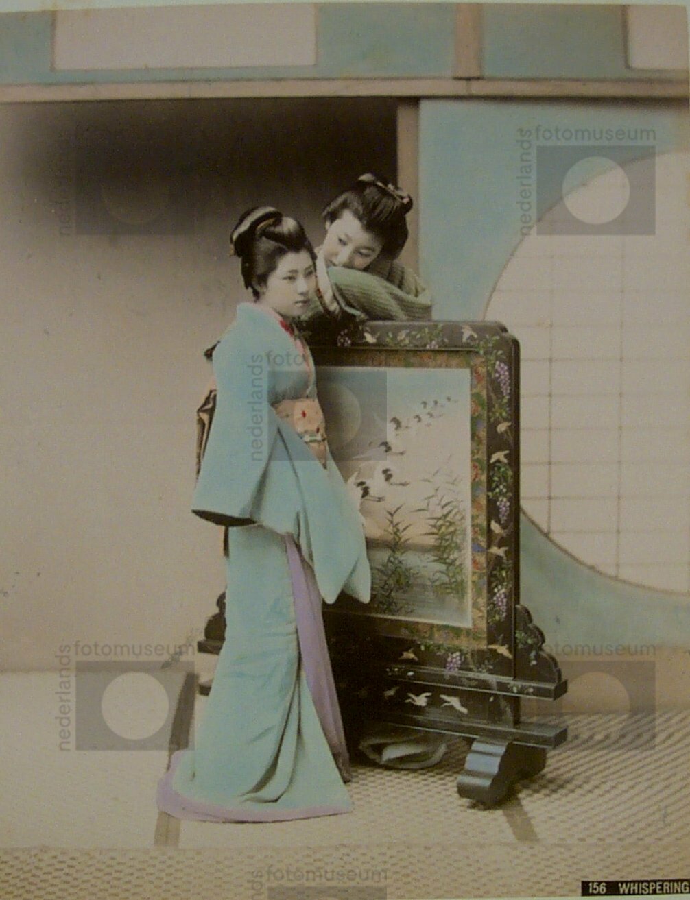 Twee vrouwen, fluisterend, Japan (1881-1914)