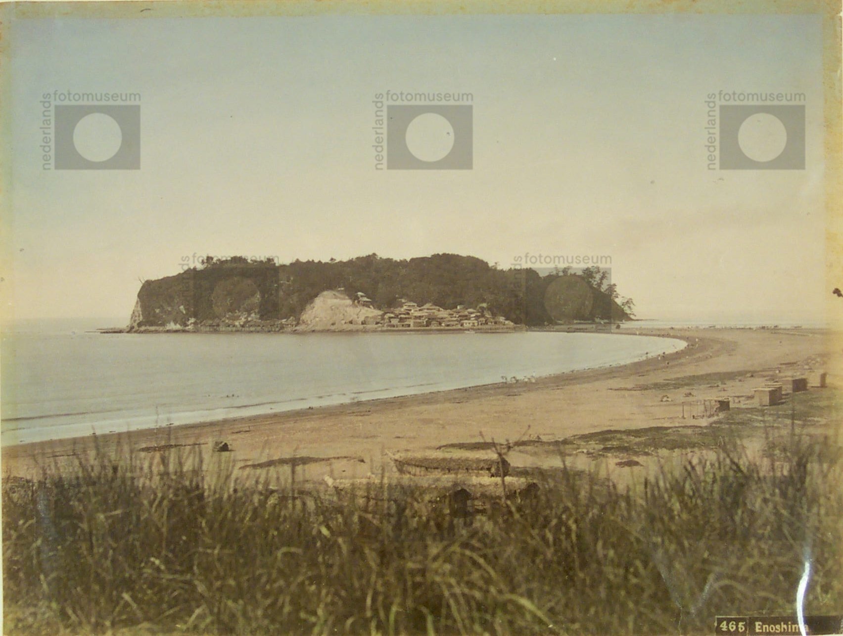 Het eiland Eno-shima, een pelgrimsoord bij laagtij, ...