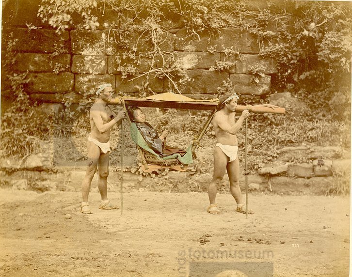 Vrouw in draagstoel, Japan (1863-1885)