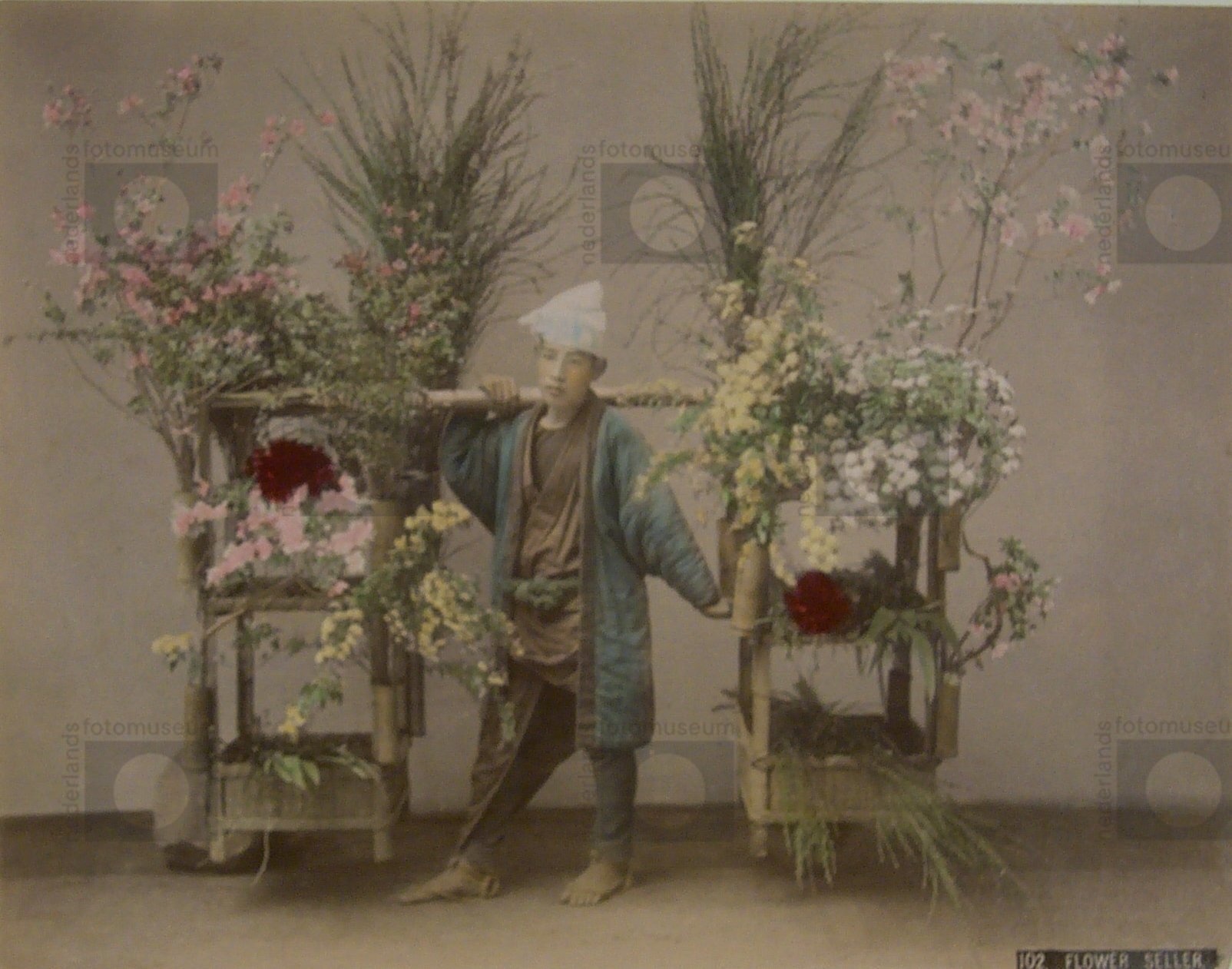 Genrescene, een bloemenverkoper, Yokohama, Japan (18...