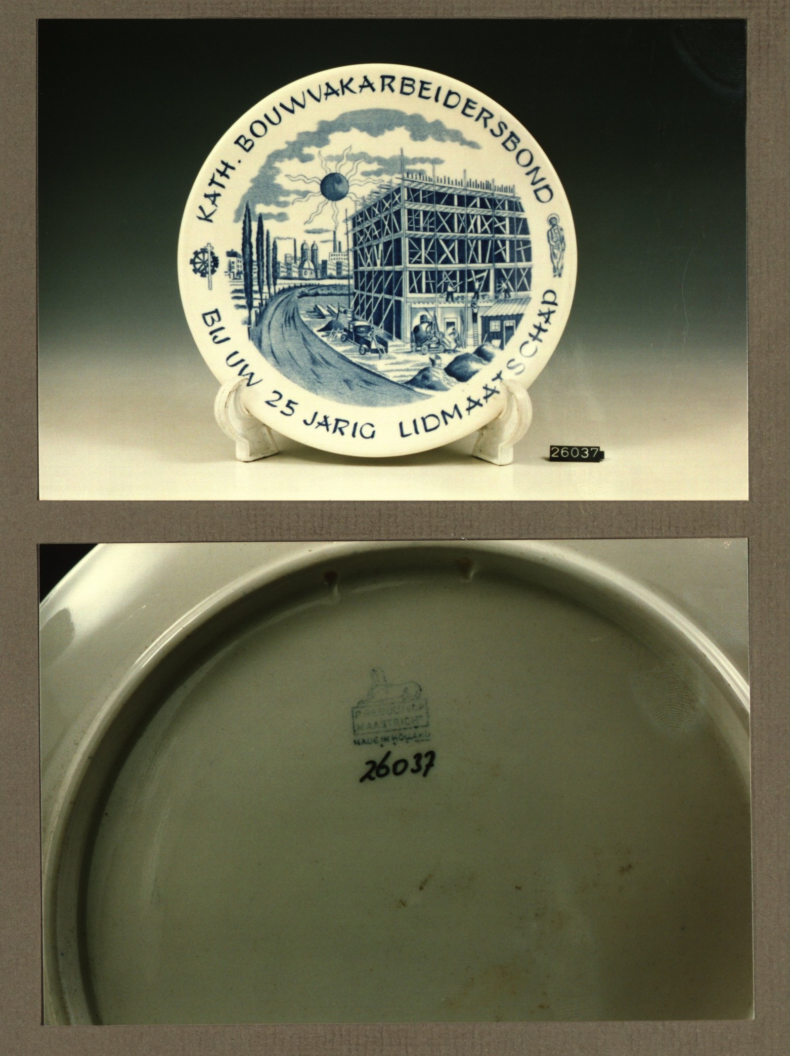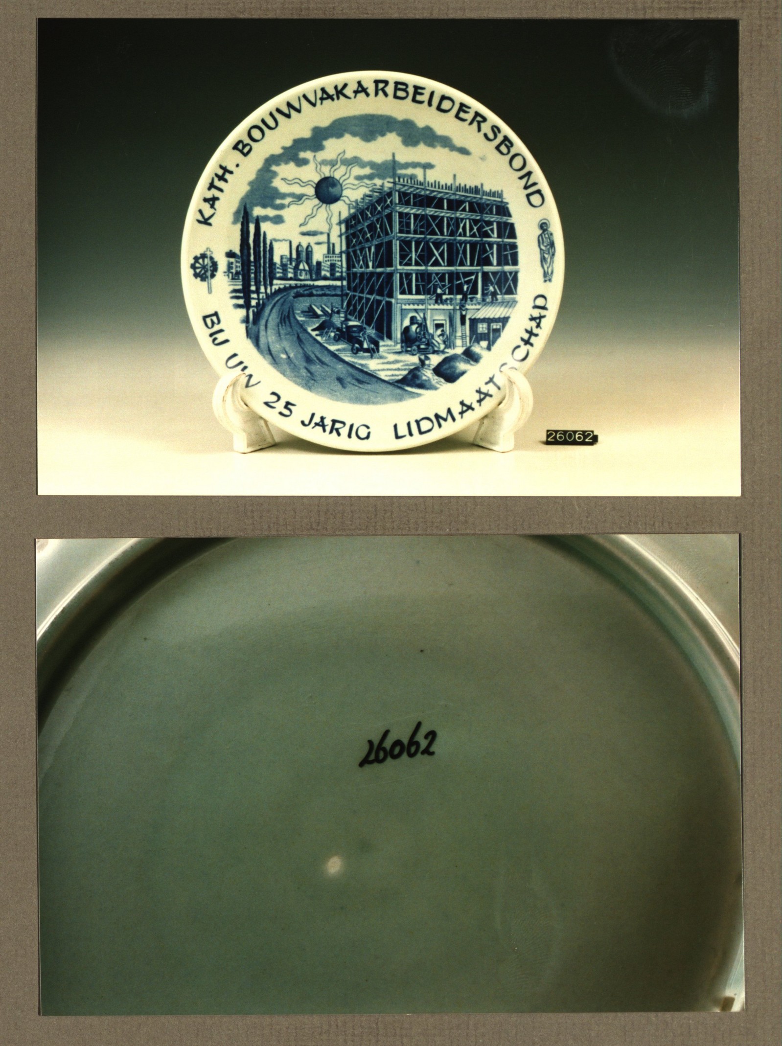 Wandbord met decor Kath.bouwvakarbeidersbond 25 jari...