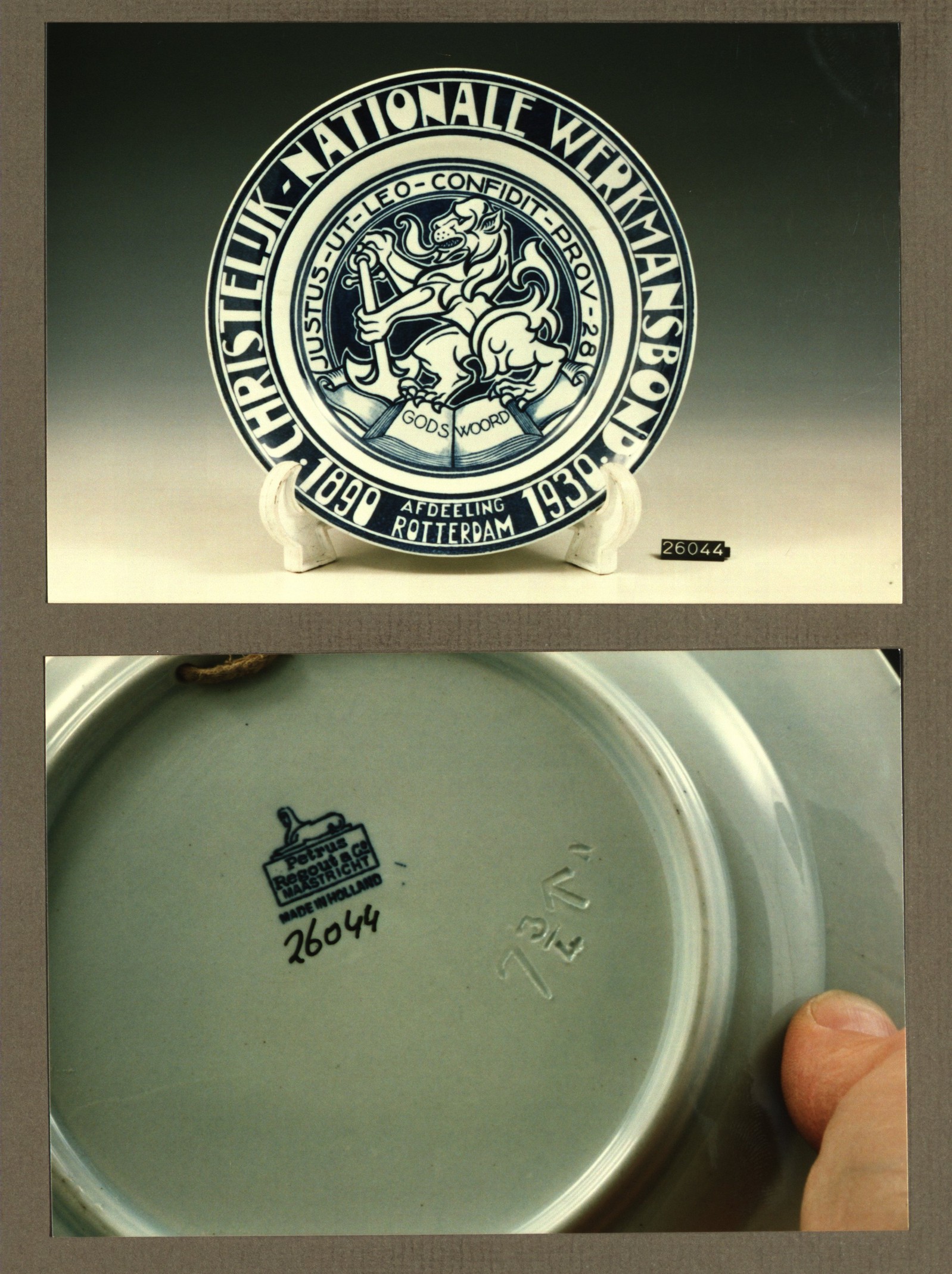 Wandbord met decor Werkmansbond afd.Rotterdam 1890-1930
