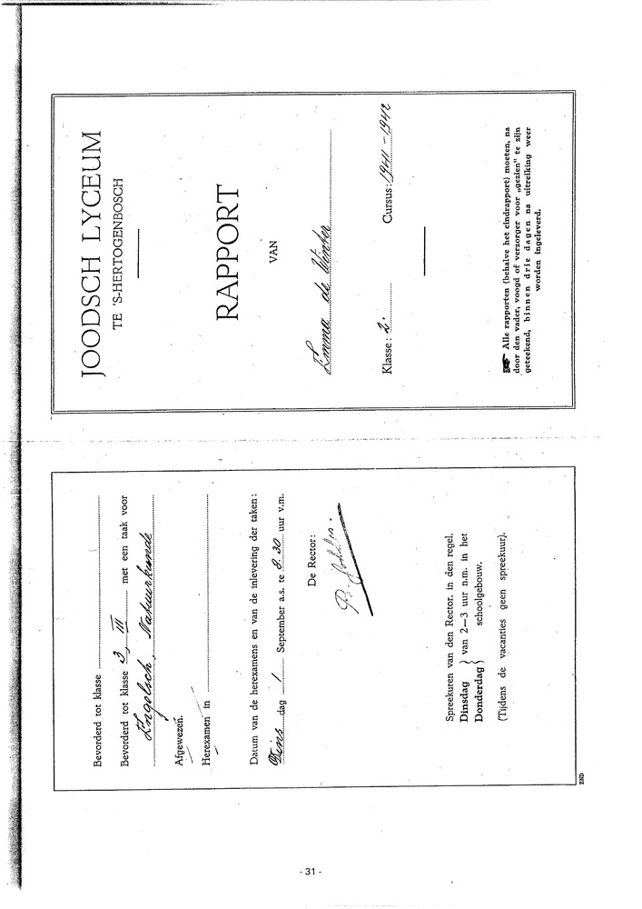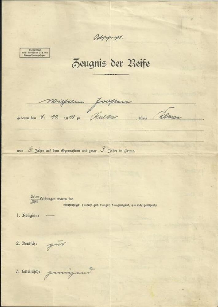 Zeugnis der Reife betreffende Wilhelm Joosten