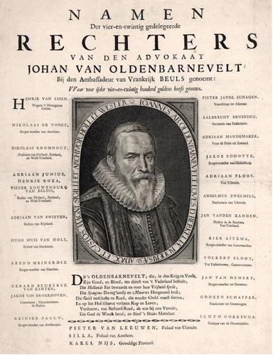 Gravure veroordeling staatsman Johan van Oldenbarnevelt