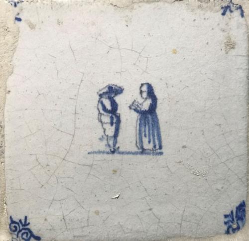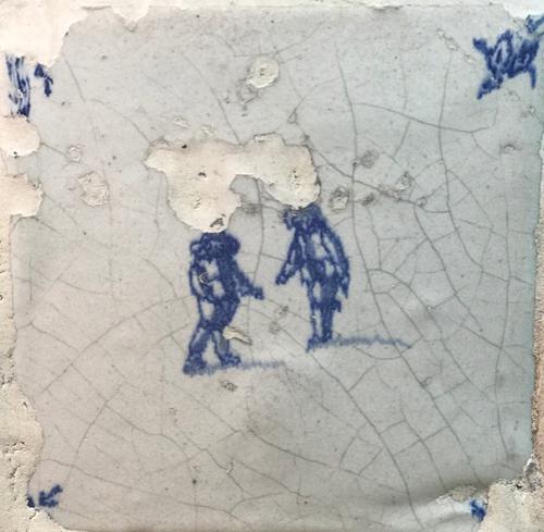 Tegel van aardewerk met tinglazuur voorstellende ste...