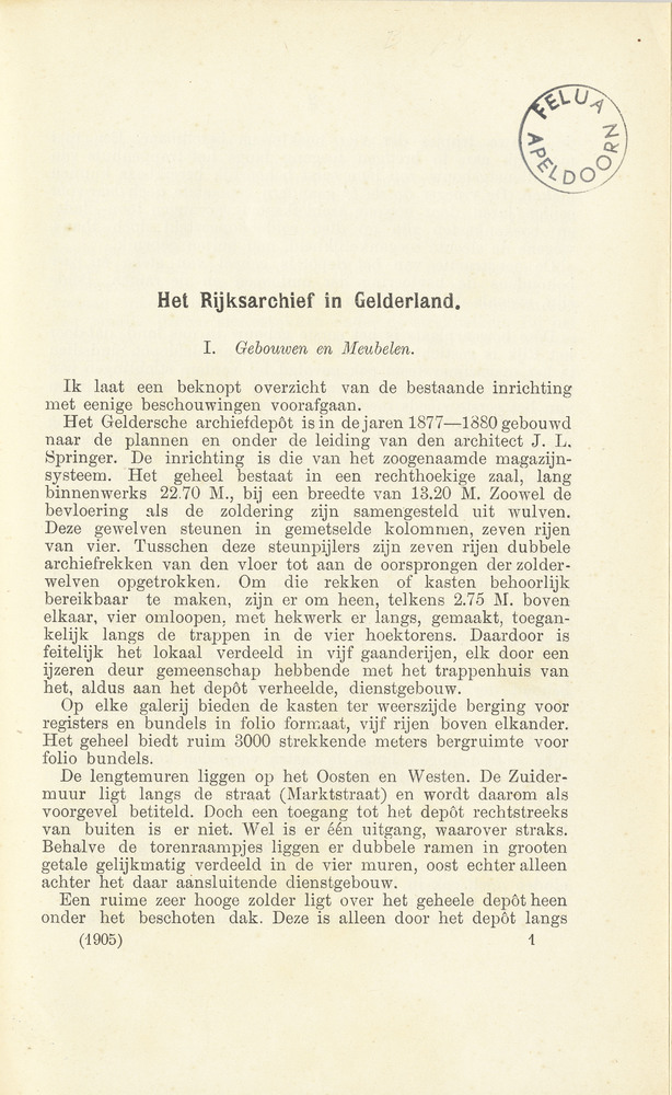 Het Rijksarchief in Gelderland : 1905