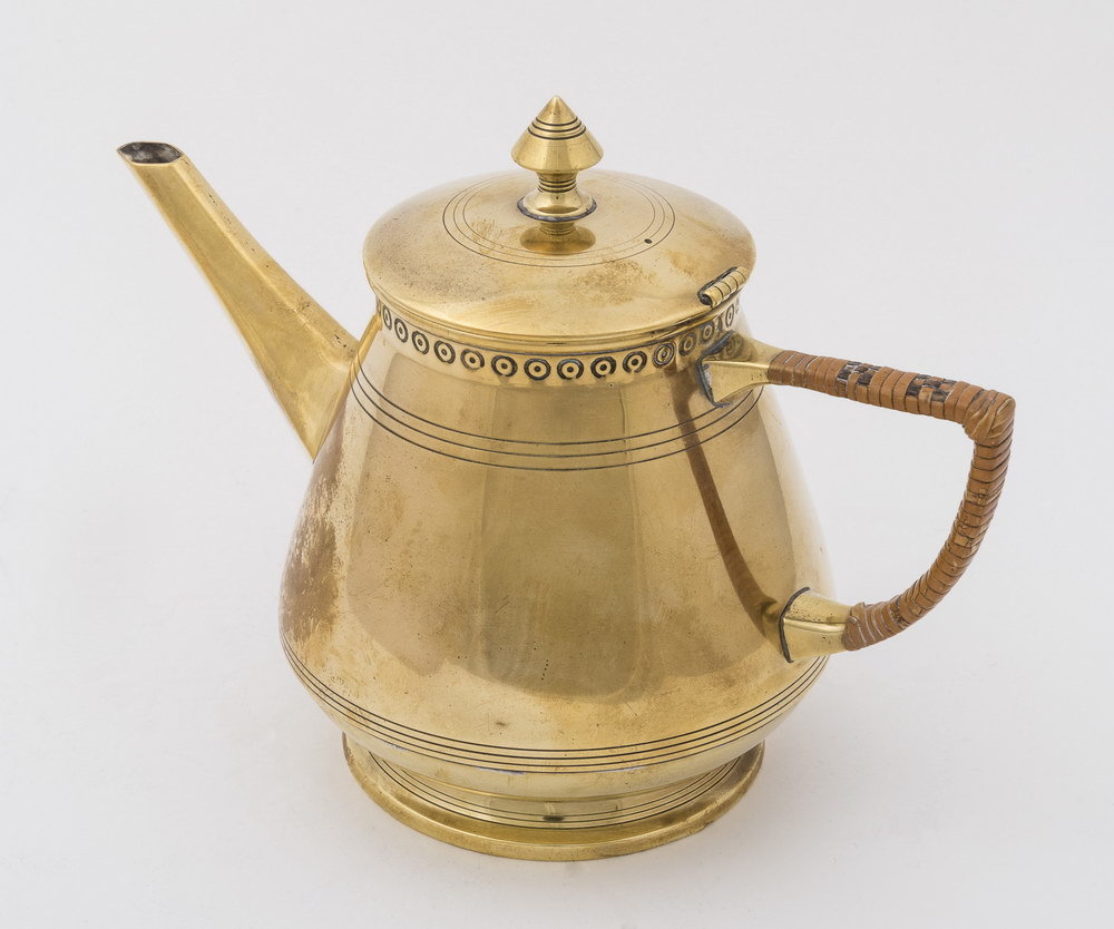 Theepot van messing, vervaardigd door Metaalwarenfab...