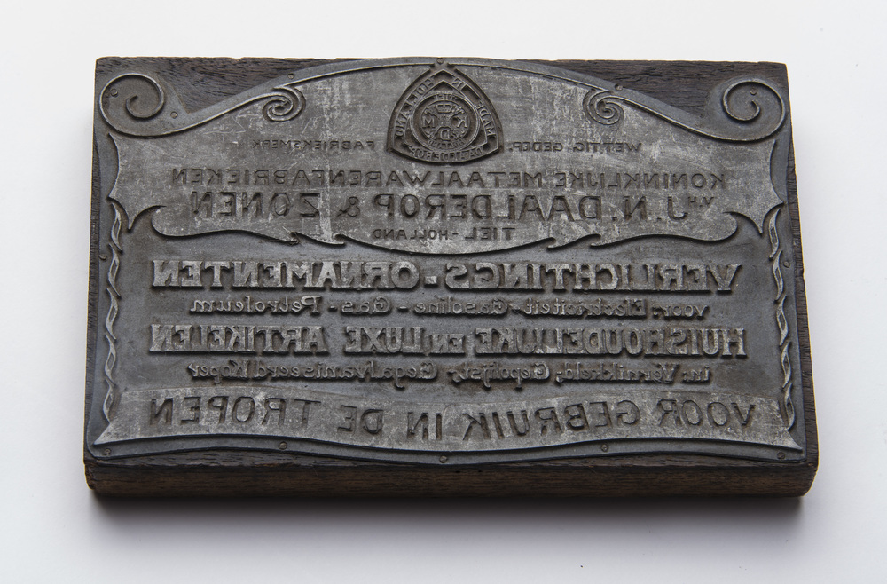 Cliche op hout t.b.v. de catalogus voor verlichtings...