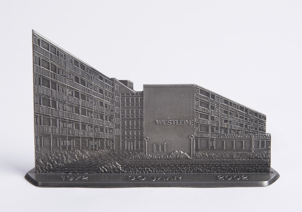 Miniatuur van tin met afbeelding van verzorgingshuis...