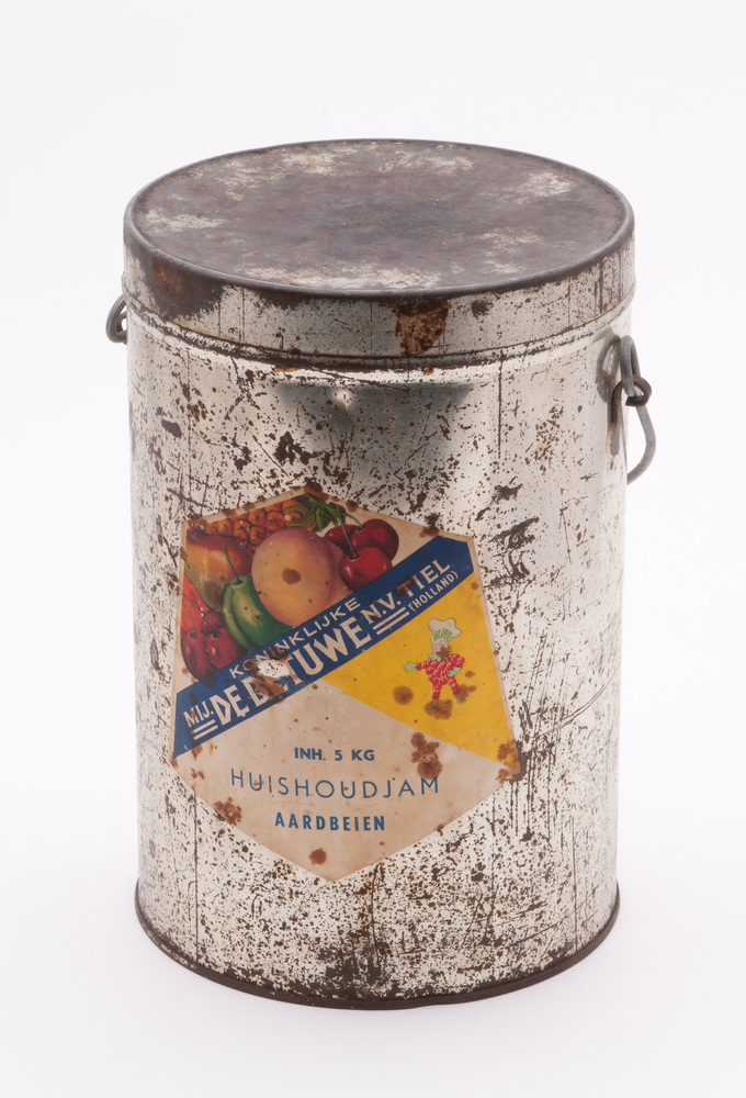 Blik met deksel en hengsel, afkomstig van Mij. de Be...