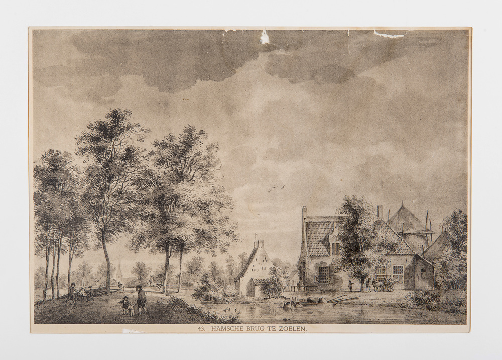 Reproductieprent, voorstellende de Hamsche Brug te Z...