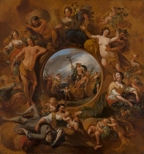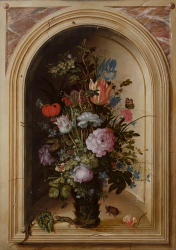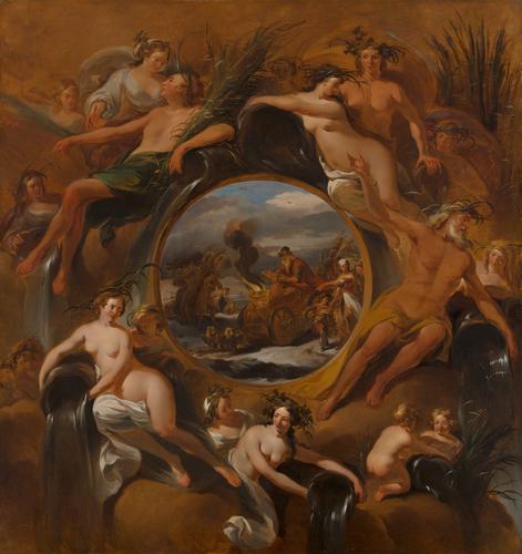 Bloemencartouche rond een buste van Constantijn Huyg...
