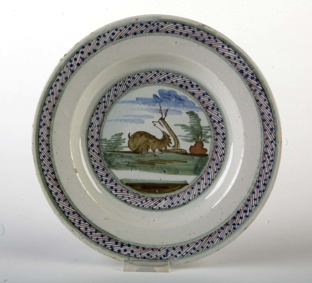 Bord van aardewerk met voorstelling, uit de 18de eeu...