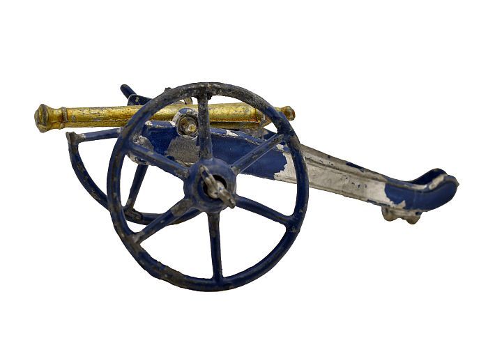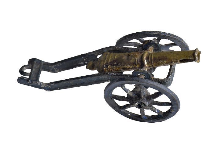 Tinnen figuur van een kanon uit de Frans-Duitse oorlog
