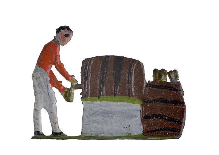 Tinnen figuur in de vorm van tonnen met een Engelse ...