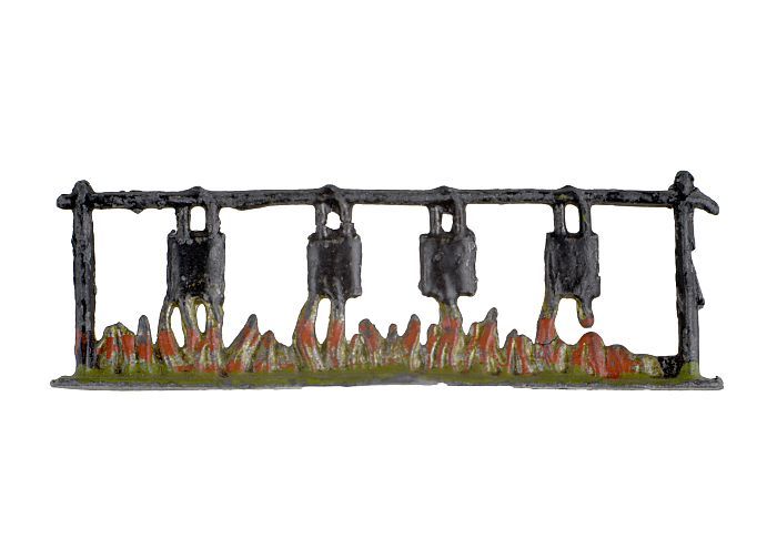 Tinnen figuur in de vorm van een kampvuur met vier k...