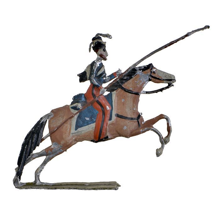 Tinnen figuren in de vorm van Russische ulanen te paard