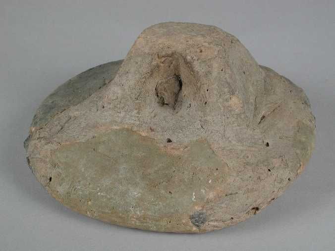 Aardewerk kookkan op standvinnen, donkergrijs aardewerk
