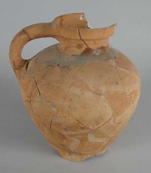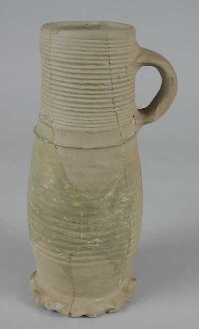 Aardewerk kruik met twee kleine oren, hals met kraag...