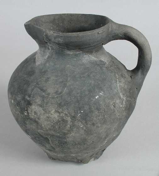 Aardewerk waterkan op standvinnen, donkergrijs aarde...