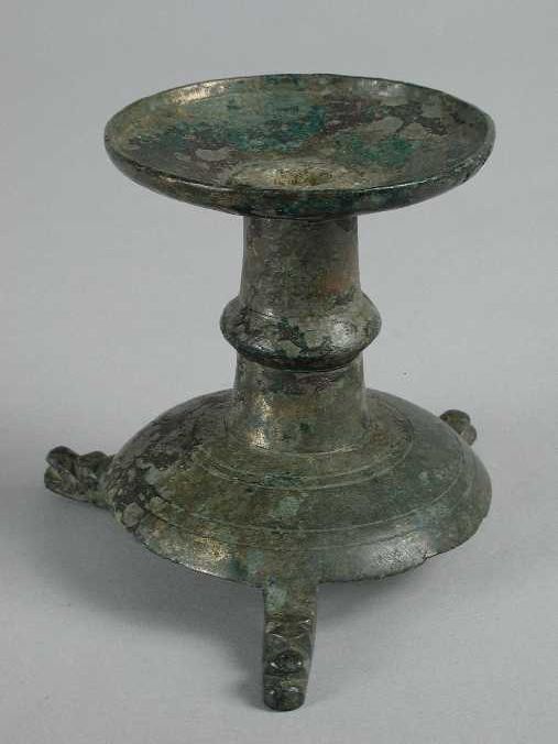 Bronzen kandelaar, drie poten, versierd met gestilee...