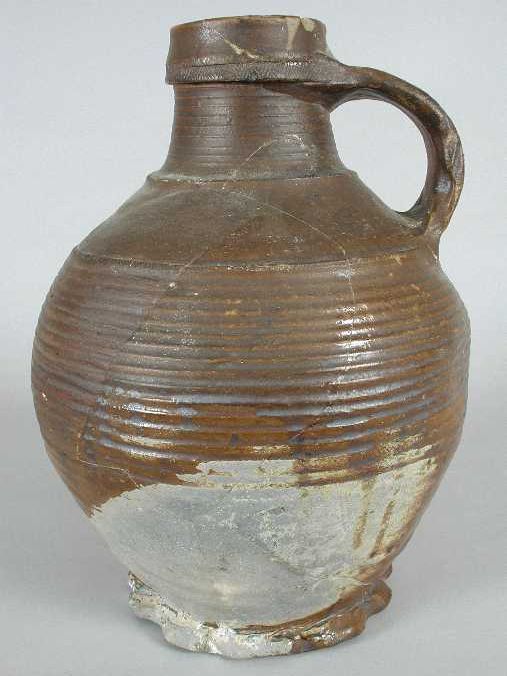 Steengoed waterkan, bruin en geglazuurd, radstempelv...