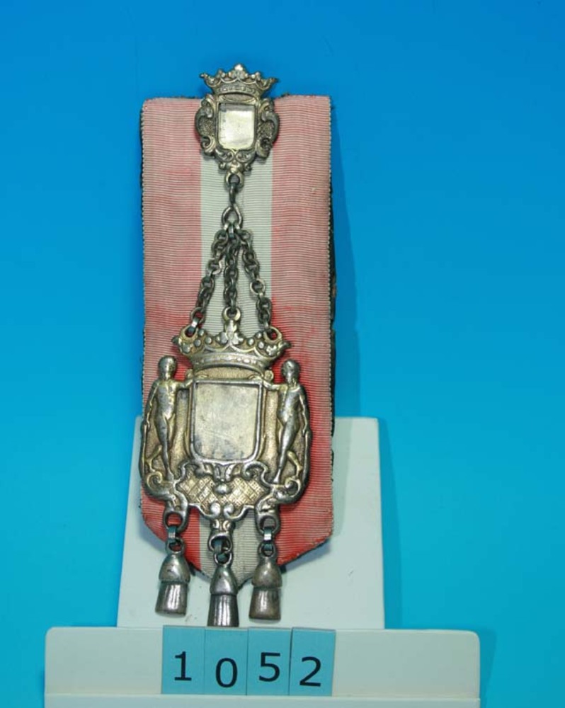 zilveren bodebus van Doesburg op rood wit lint; kern...