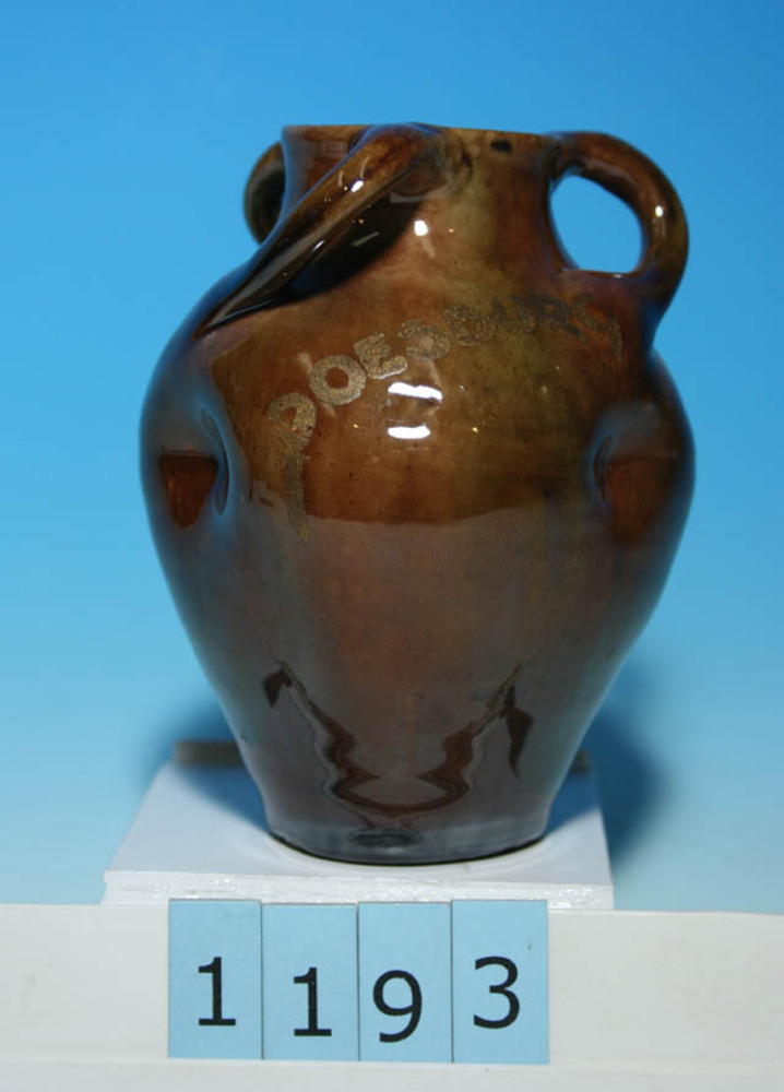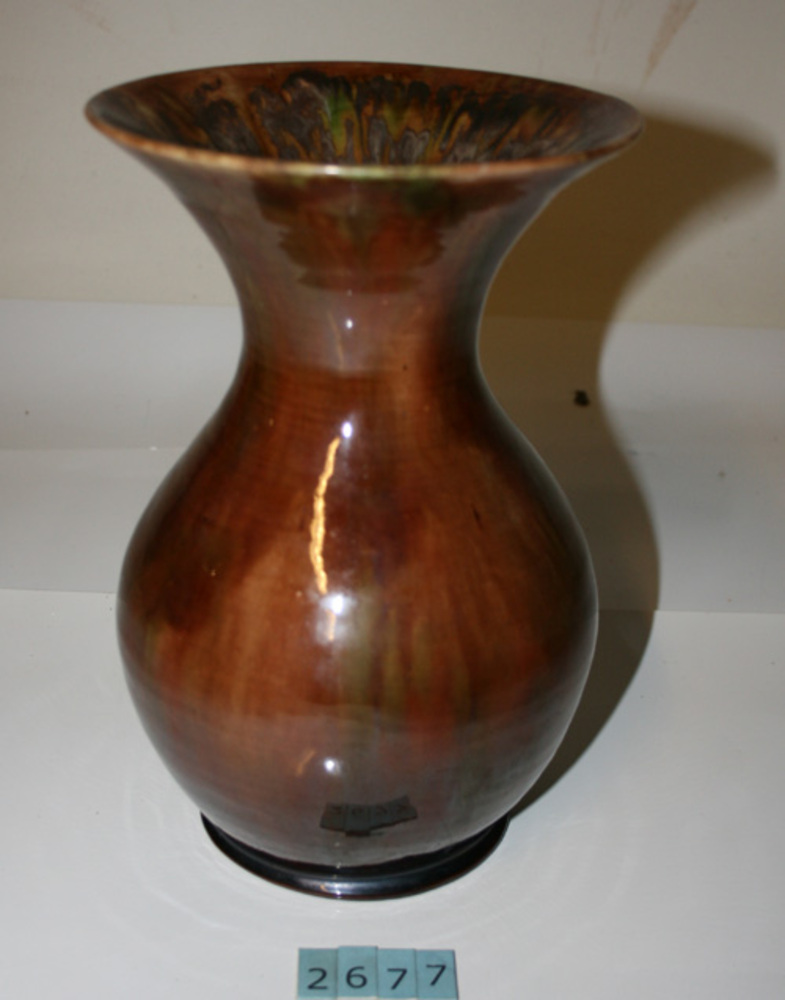 bruine vaas met druippatroon gemaakt door Pottenbakk...