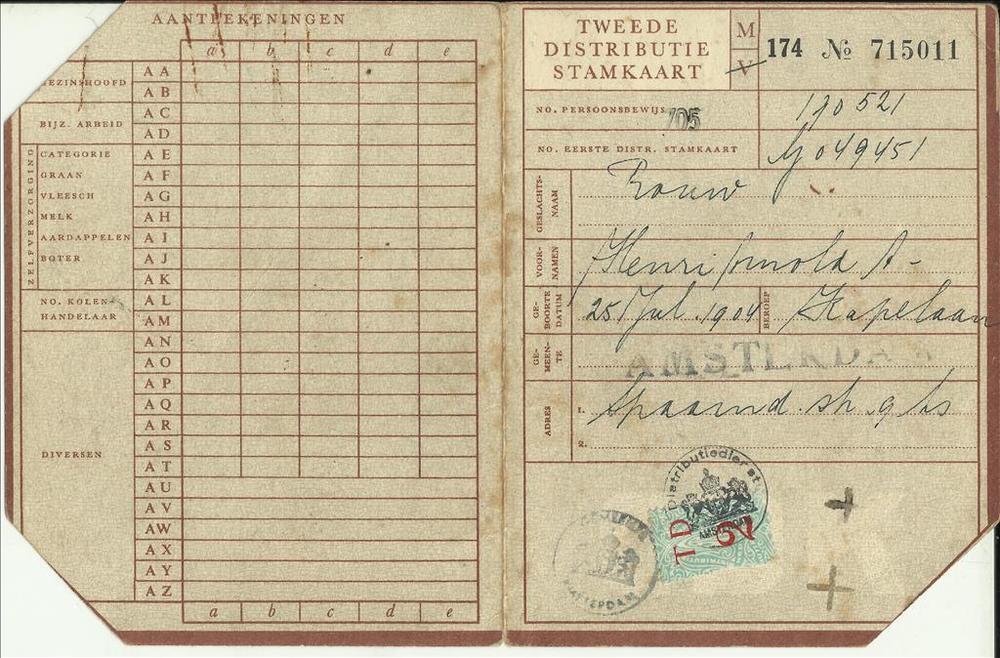 Tweede Distributiestamkaart van : Henri Arnold Anton...