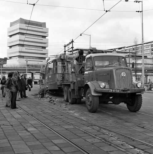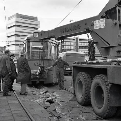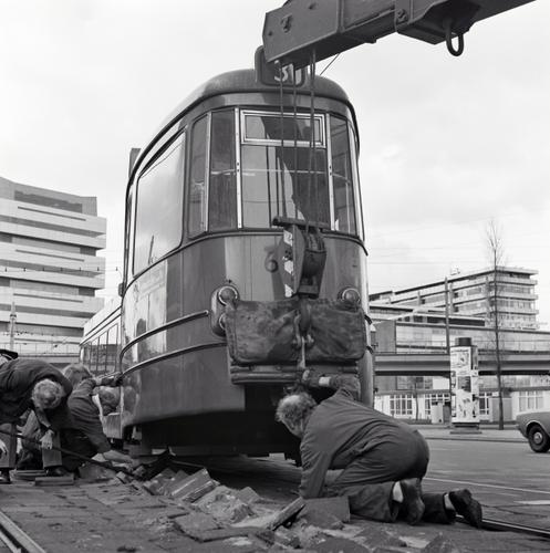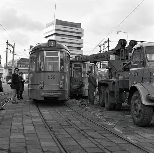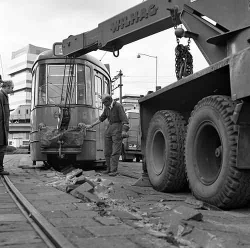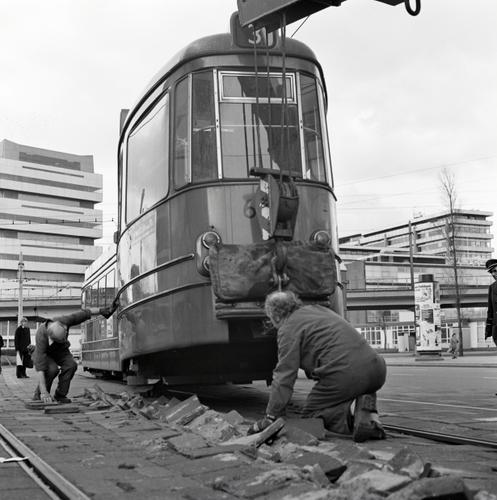 Rotterdam, Schiekade, met ontspoorde RET tram