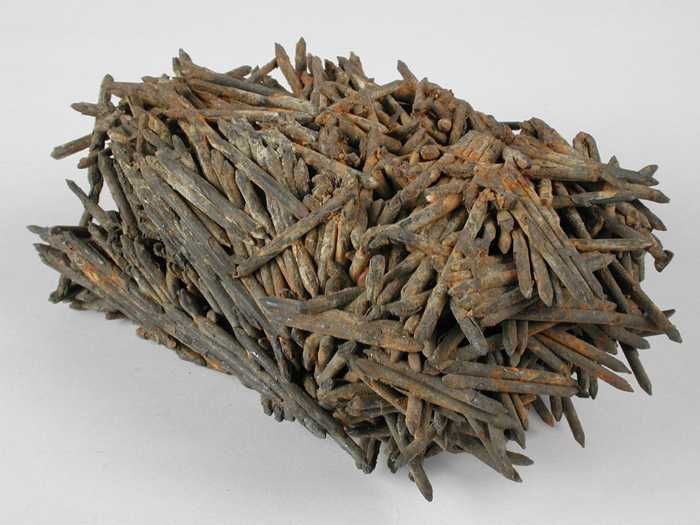 Klomp aan elkaar gesmolten spijkers