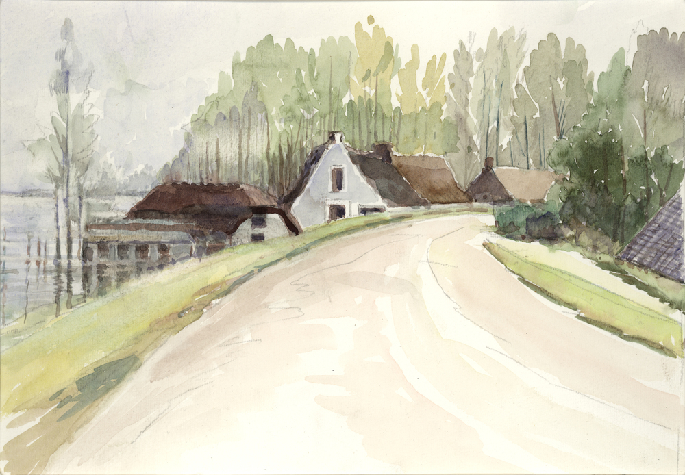 Aantal "boerderijen" twee met afgevlakte daken en tw...