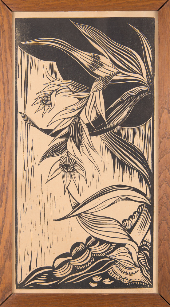 Linosnede, voorstellende een opgaande plant met afha...