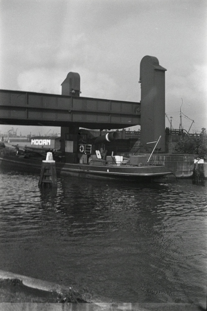 Zwart-wit foto van het schipperspoortje in Lobith ca...