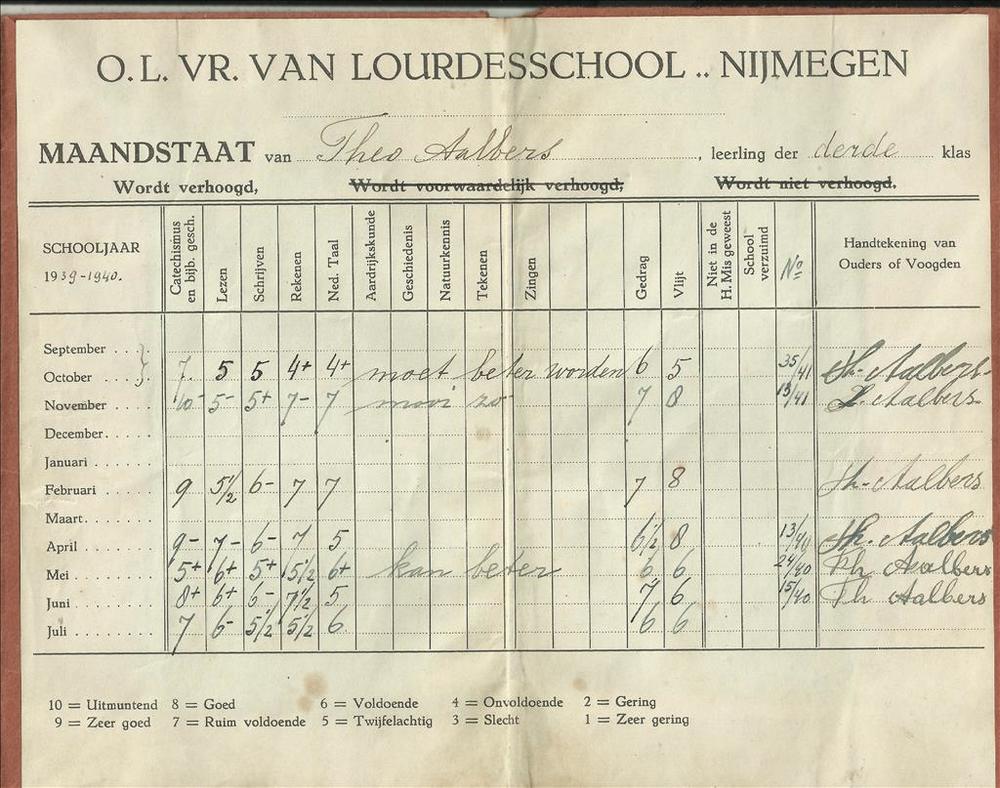 Schoolrapport - maandstaat van Theo Aalbers leerling...