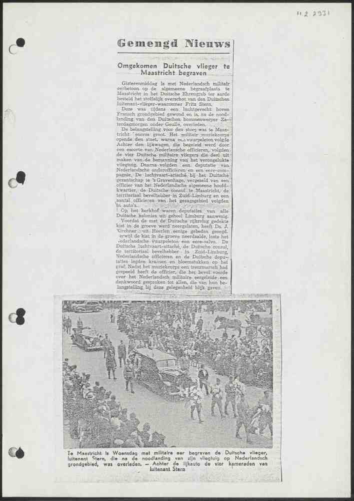 Omgekomen Duitsche vlieger te Maastricht begraven