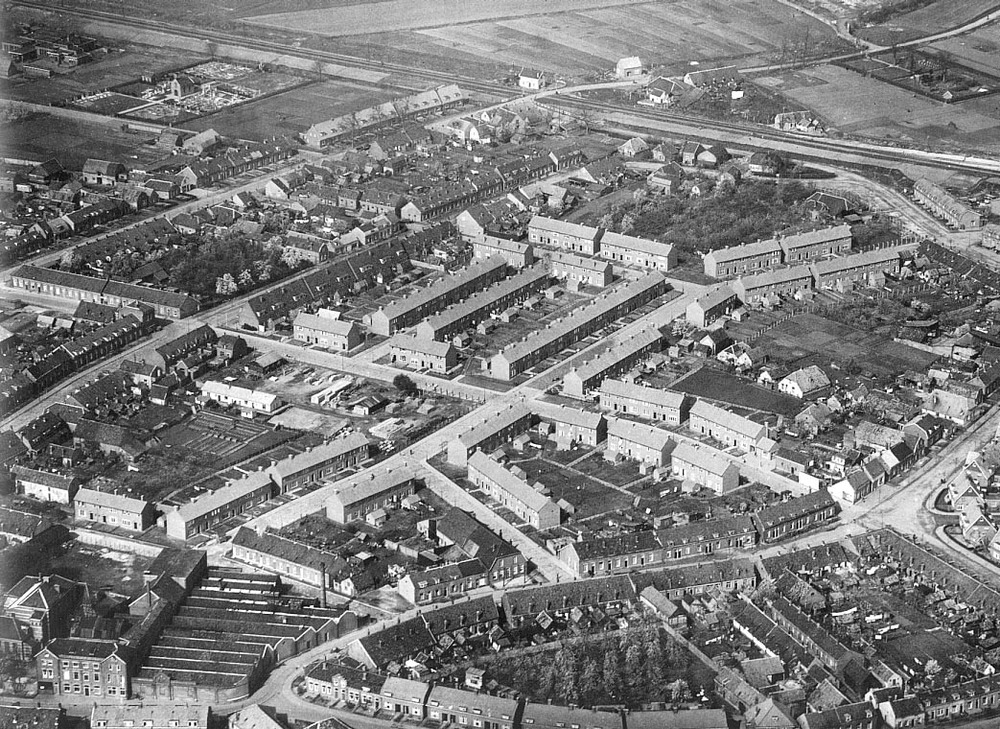 Luchtfoto van Tiel - Oost, 1950