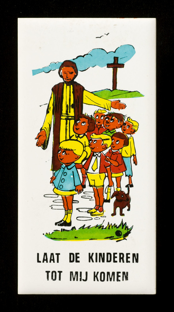 Tegel van keramiek, transfer, tinglazuur, voorstelle...