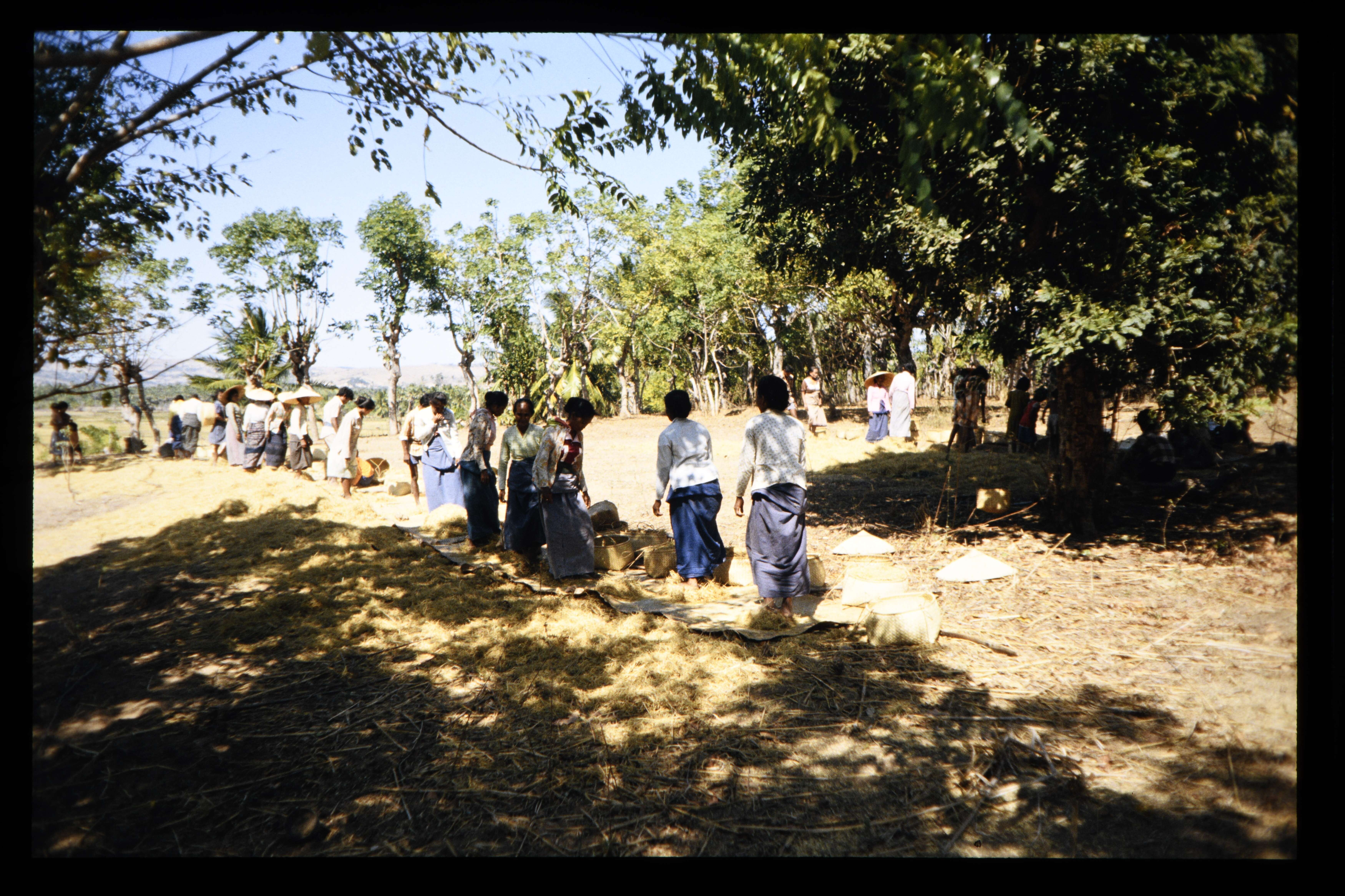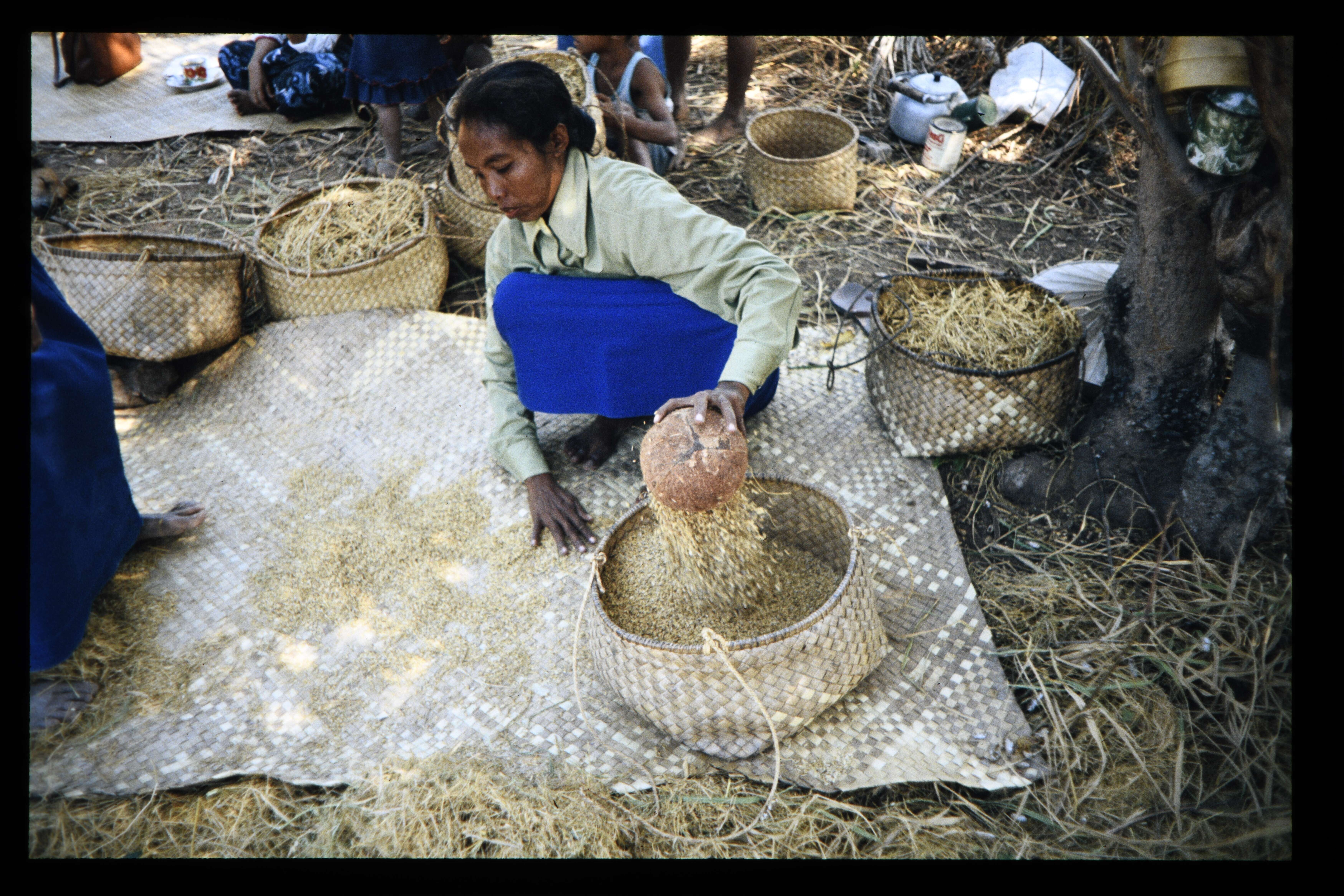 Afwerken rijstoogst te Seba