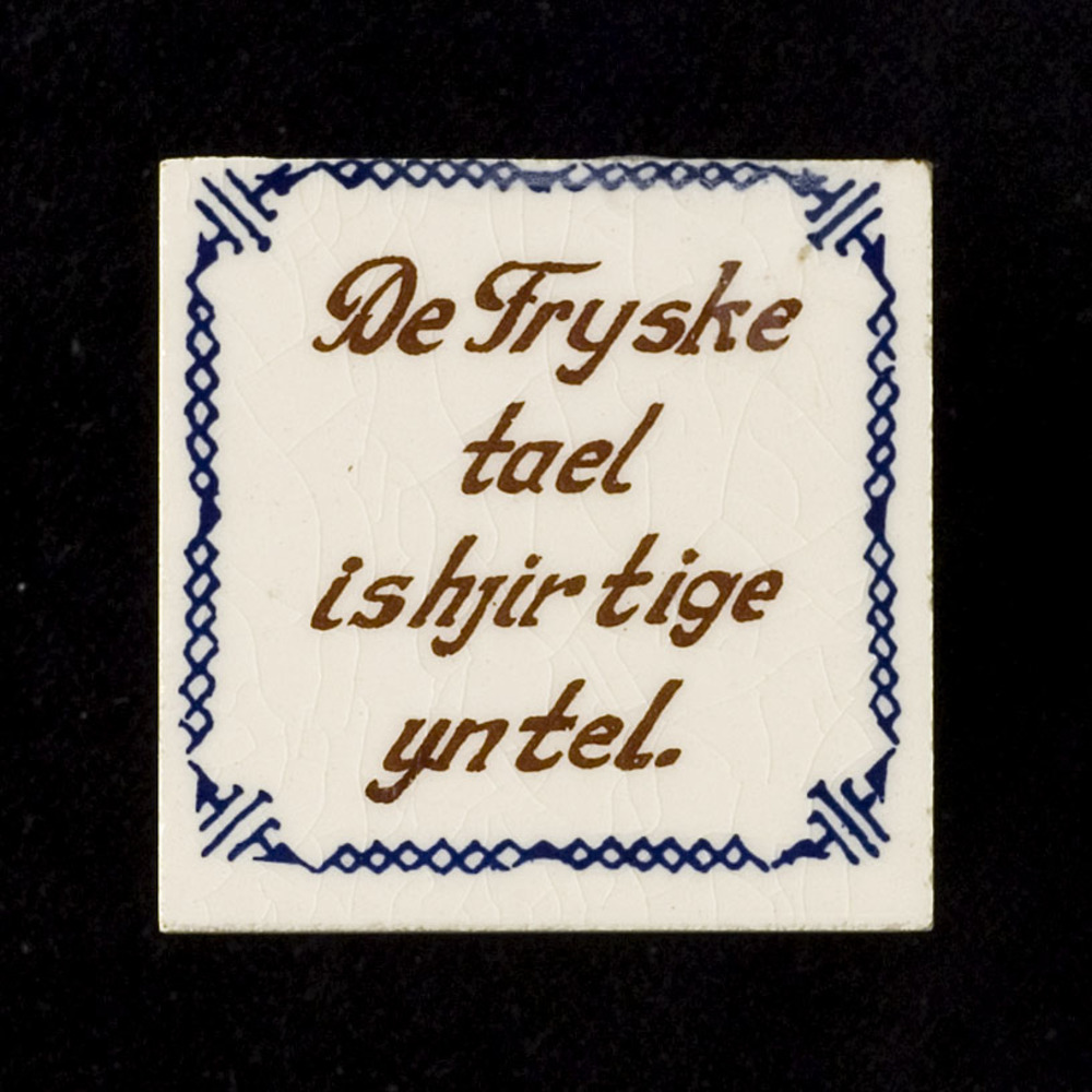Tegel in transfertechniek, met Friese spreuk 'De Fry...