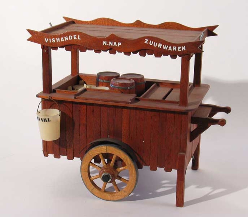 Viskar van hout, miniatuur, vervaardigd door Hein Le...