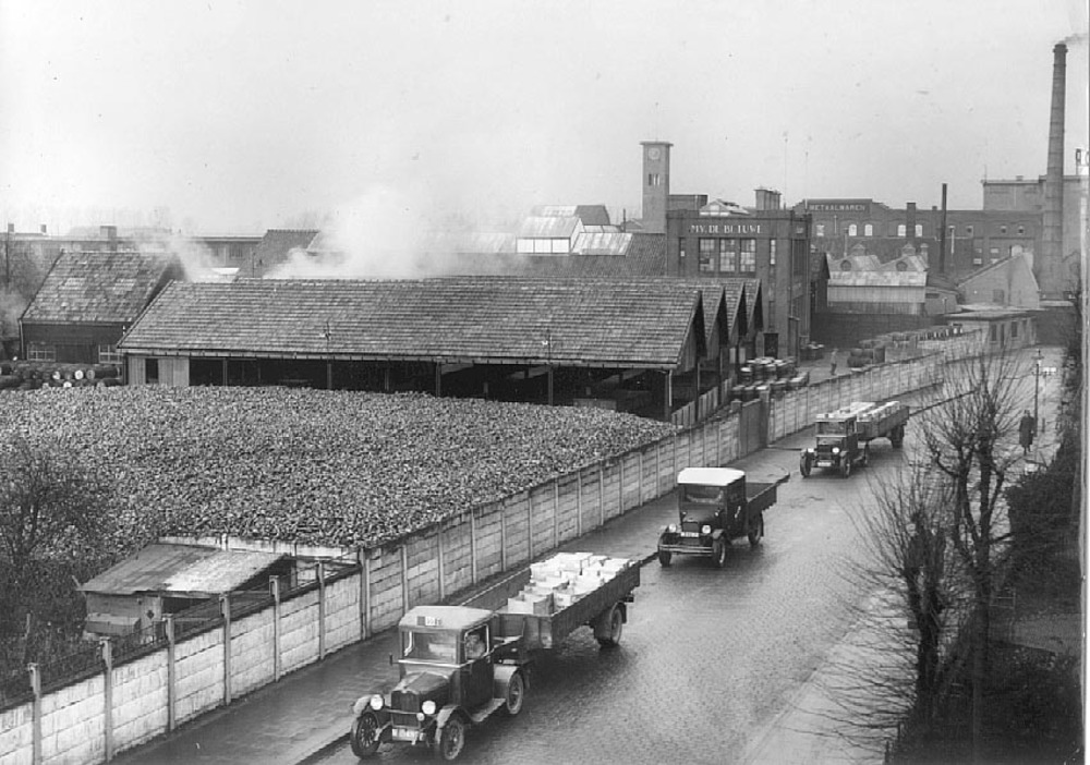 Bietenopslag met pulpfabriek en vrachtauto's Mij De ...