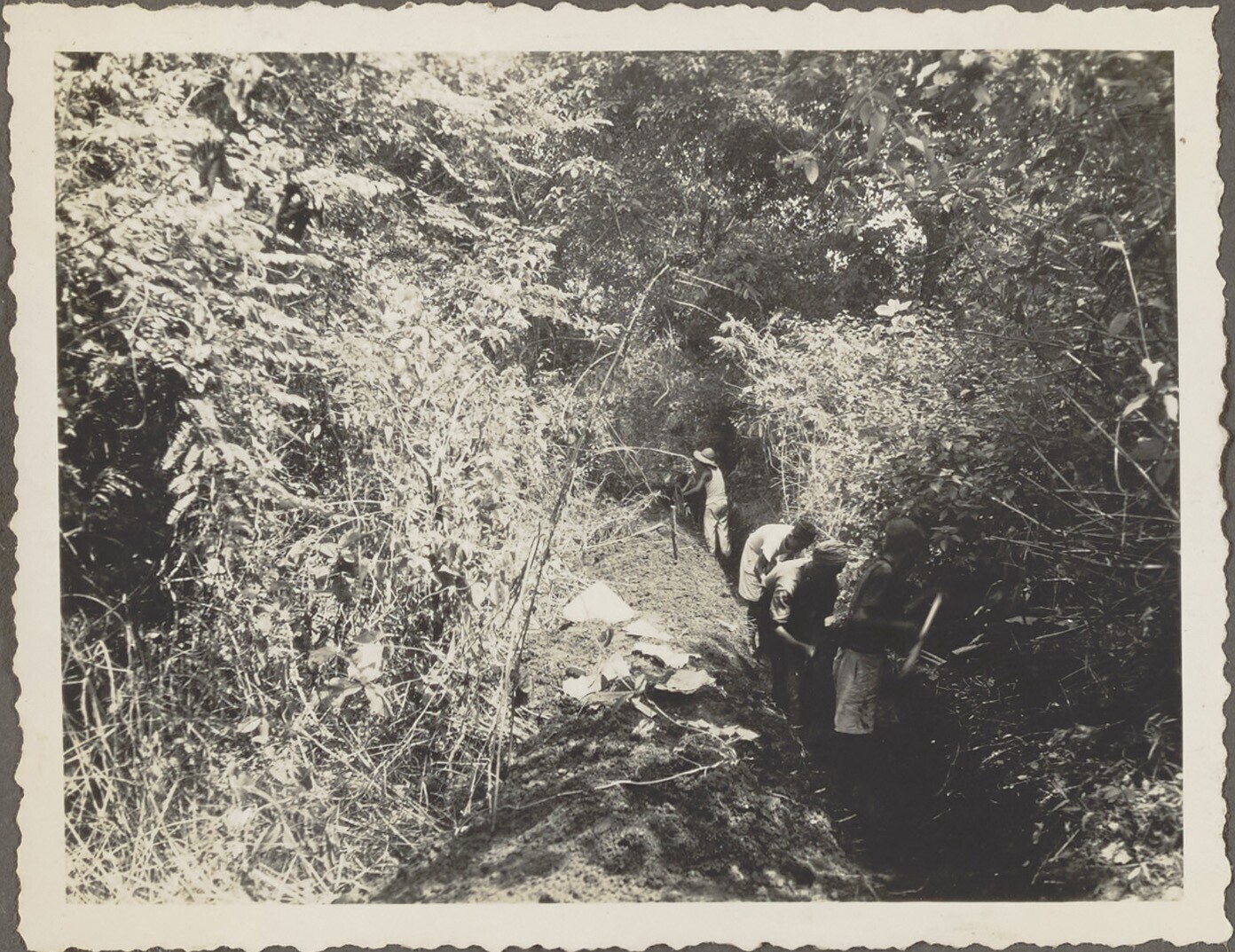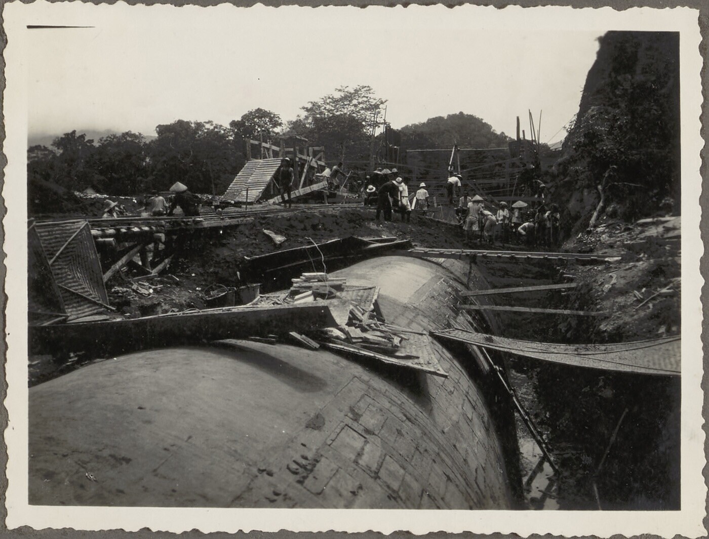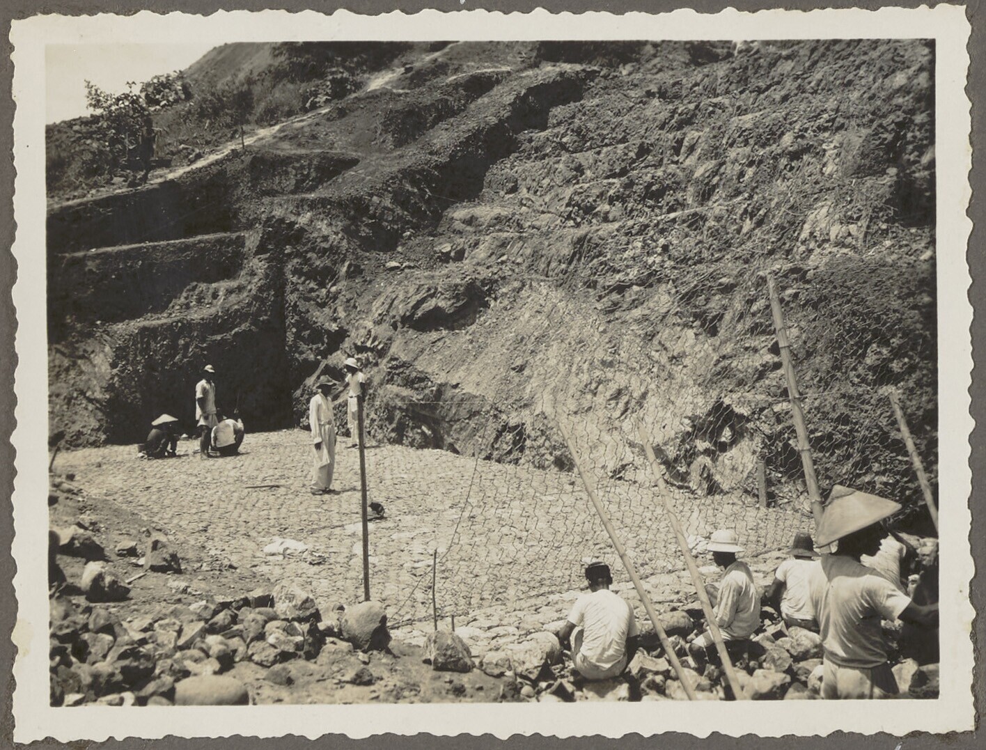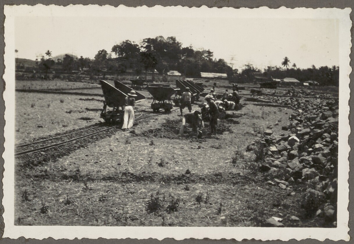 Herstelwerkzaamheden door Javaanse arbeiders na een ...